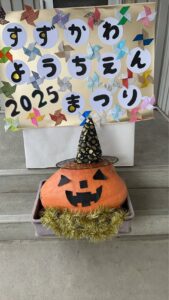 この度、鈴川幼稚園、中里保育園にて、ジャンボカボチャをハロウィン仕様にしてくださいました。