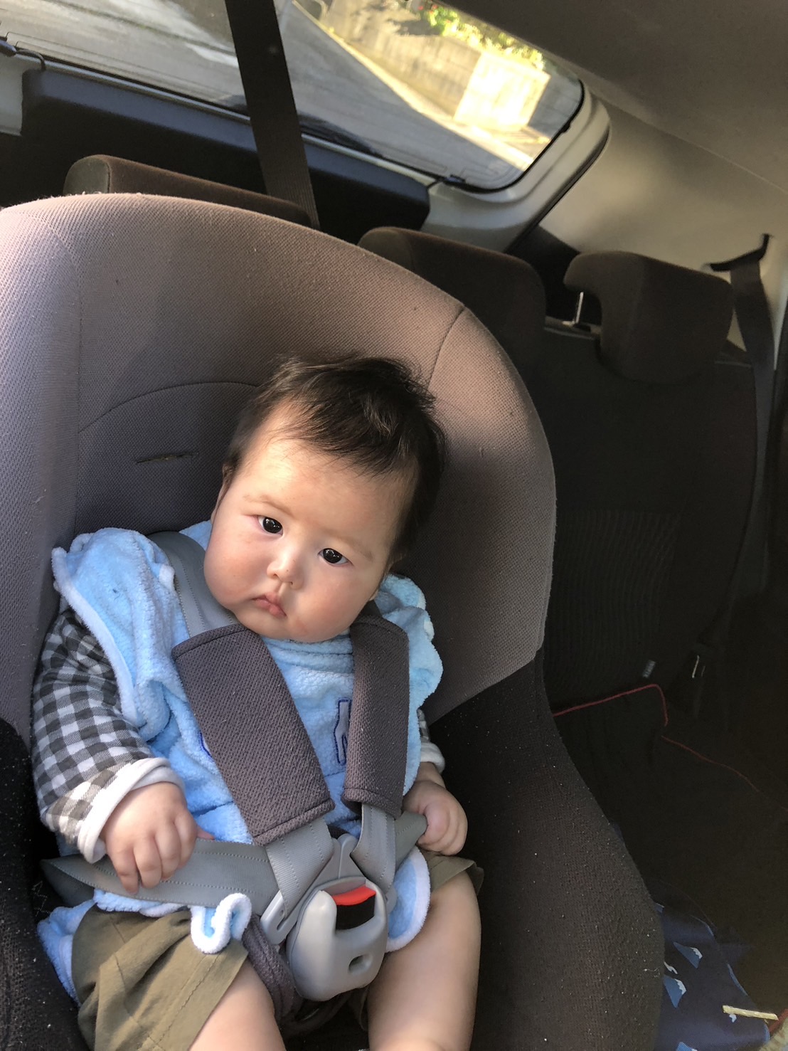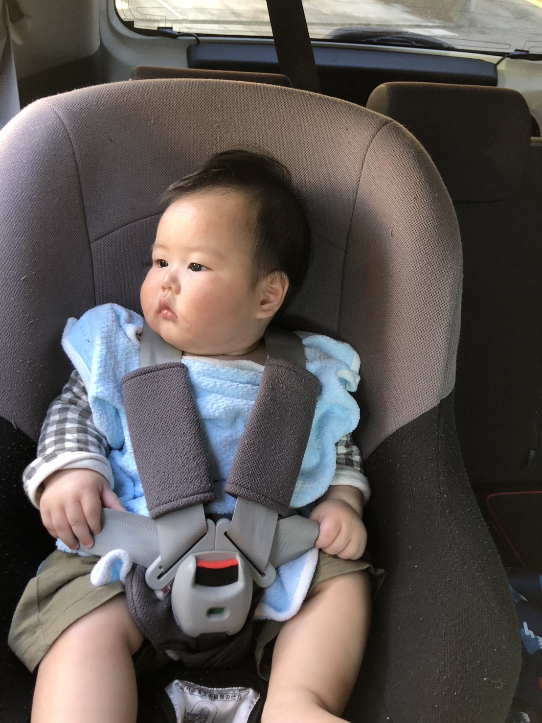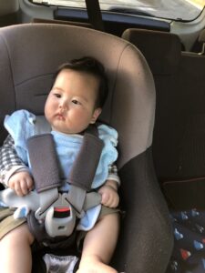 こんにちは😃。 先日いただいたチャイルドシートに乗せる日が来ました、つまり約九キロになったのです。