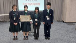 富士宮高校会議所のメンバーは、このたび、予選(書類審査)を経て、第11回 全国ユース環境活動発表大会 関東地方大会に参加して、「未来創造特別賞」を授賞しました。