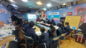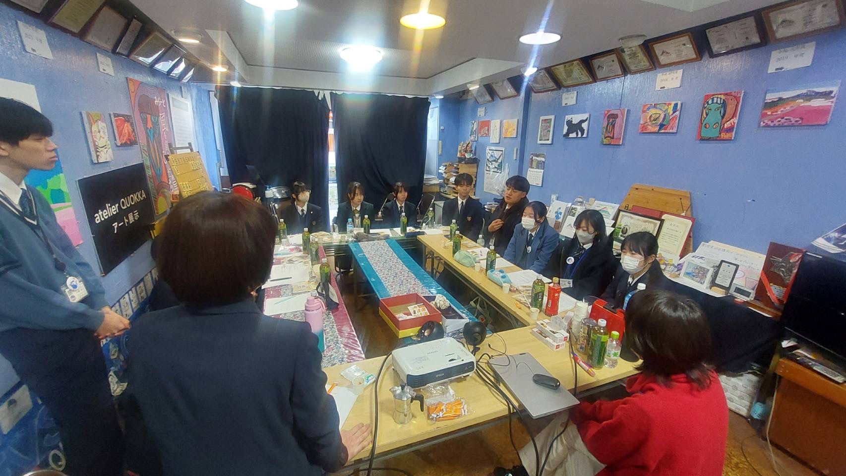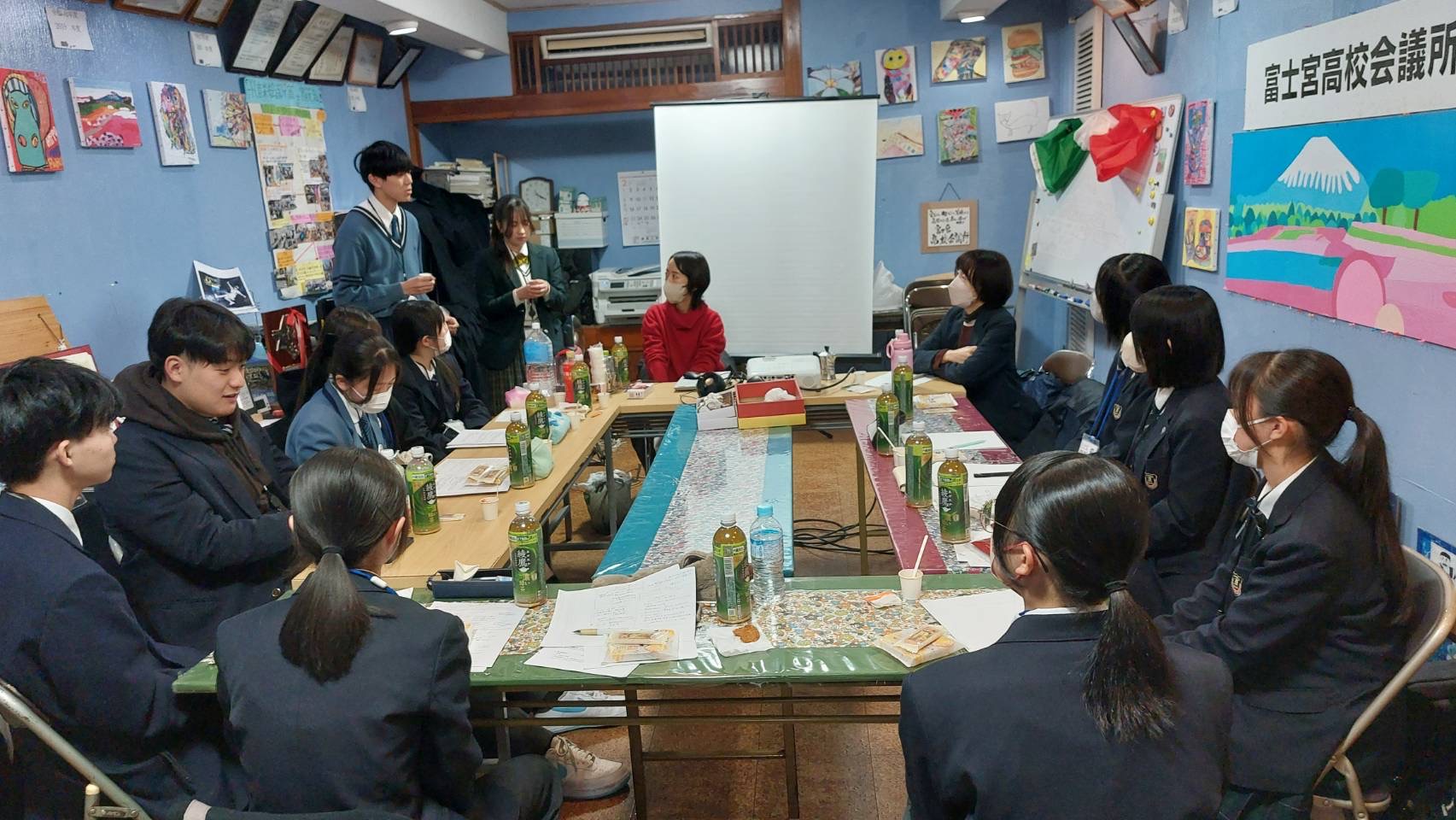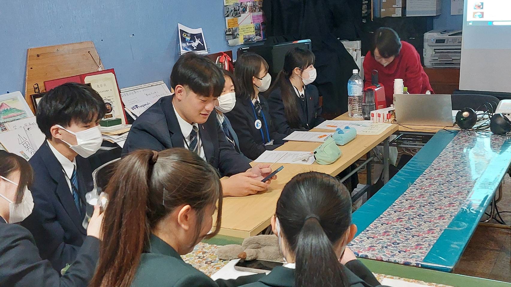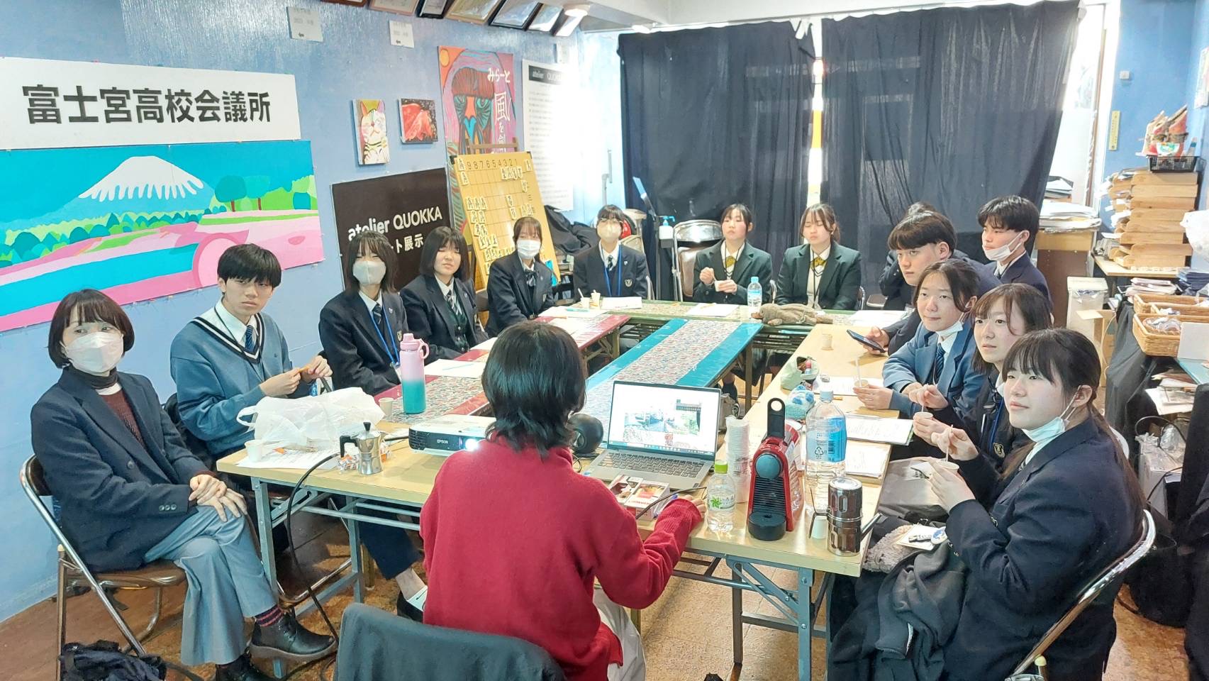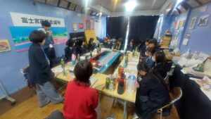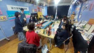 富士宮高校会議所のメンバーは、渡邉彩 株式会社 プロシューマ― 専務取締役、林教子 文部科学省 教科書調査官と座談会を行いました。