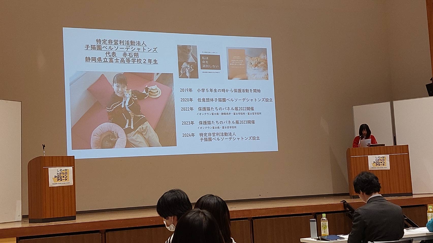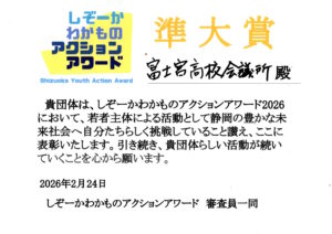 富士宮高校会議所のメンバーは、一次予選を通過し、第1回 しぞーかわかものアクションアワードに参加し、準大賞を受賞しました。