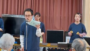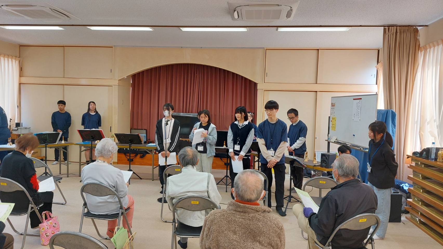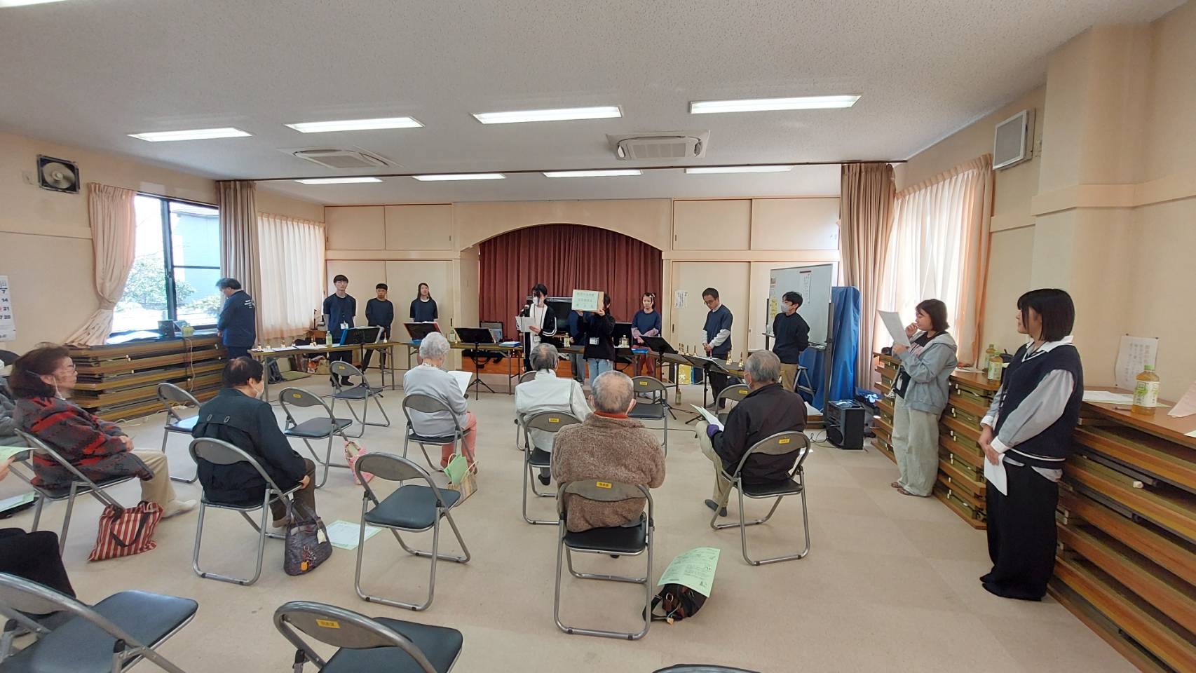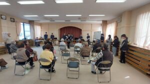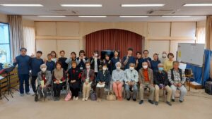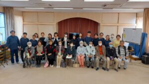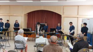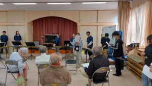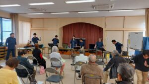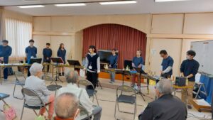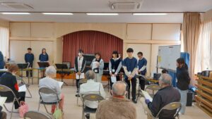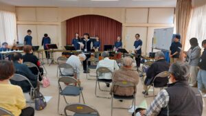 本日は、羽衣区の寄り合い処の皆様、お集りくださり、ありがとうございます。富士宮高校会議所は、音楽で富士宮を元気にという活動を行っています。