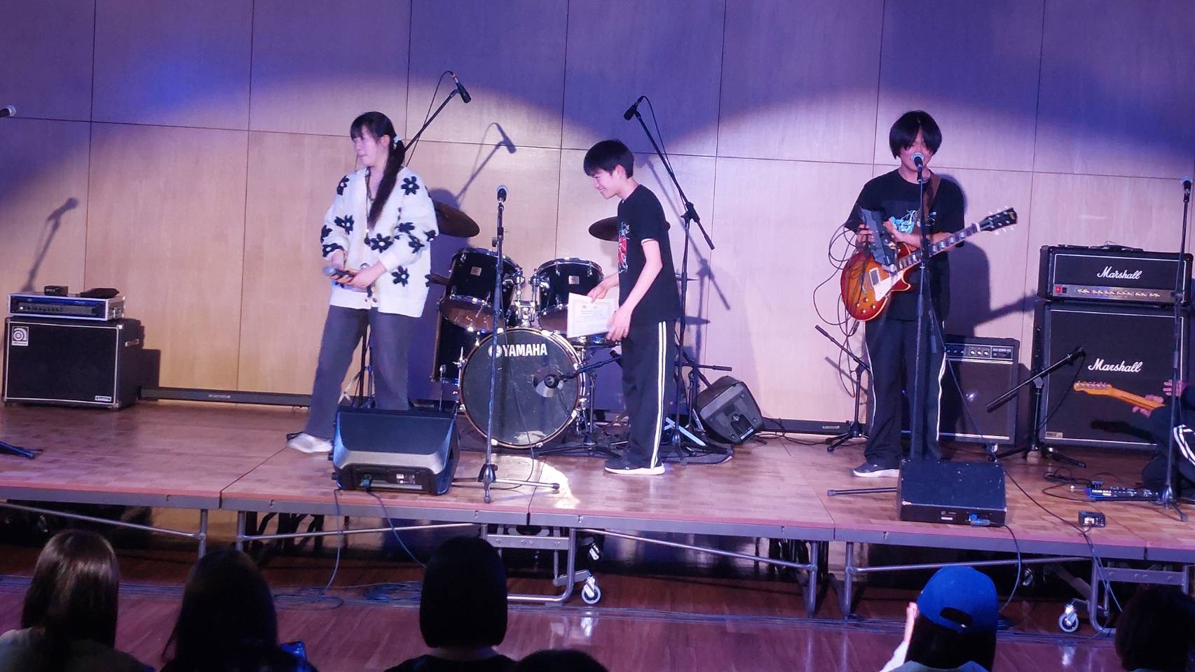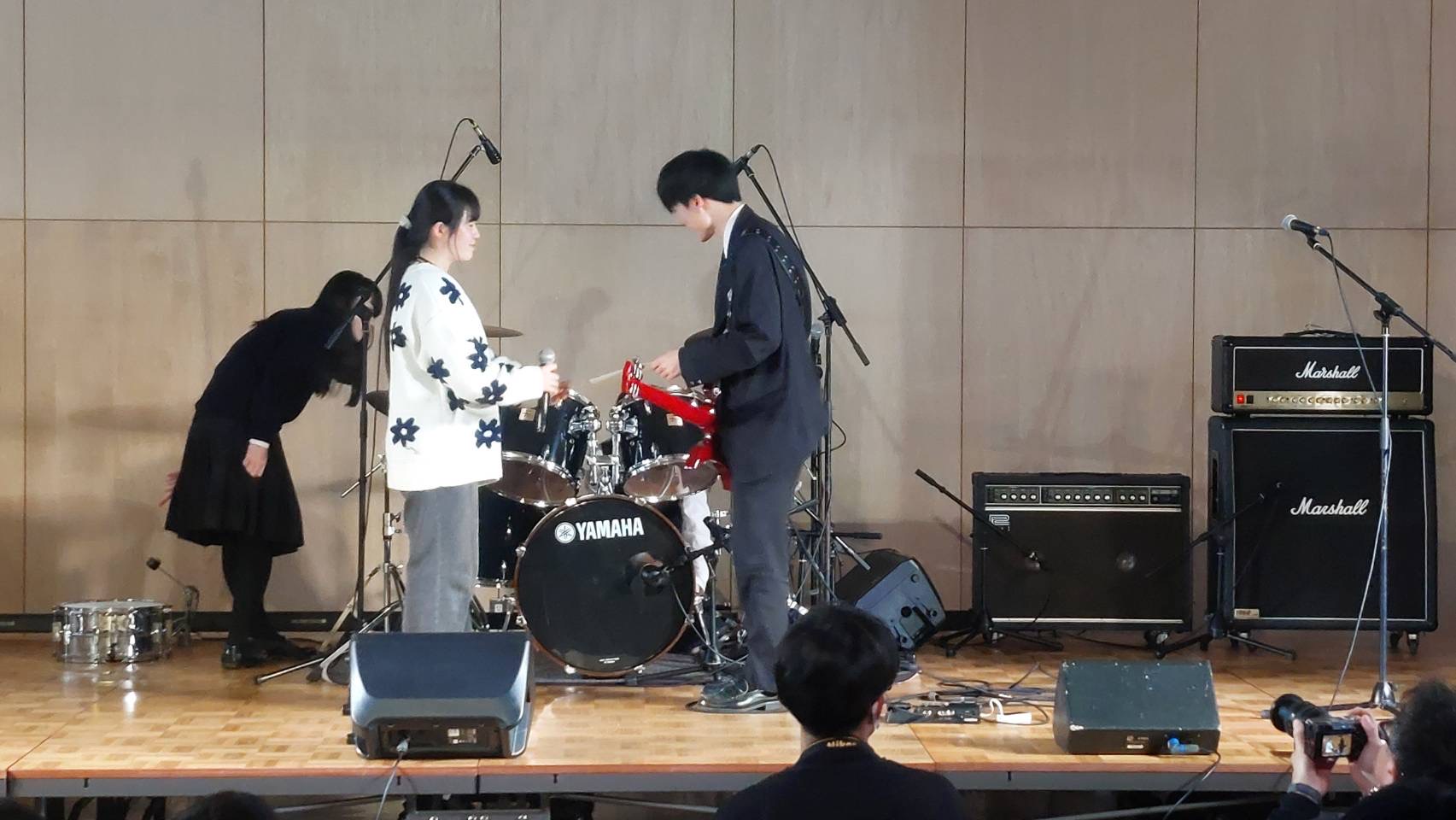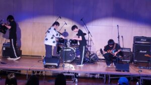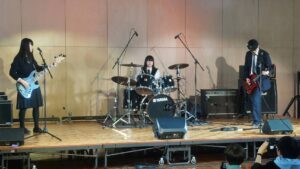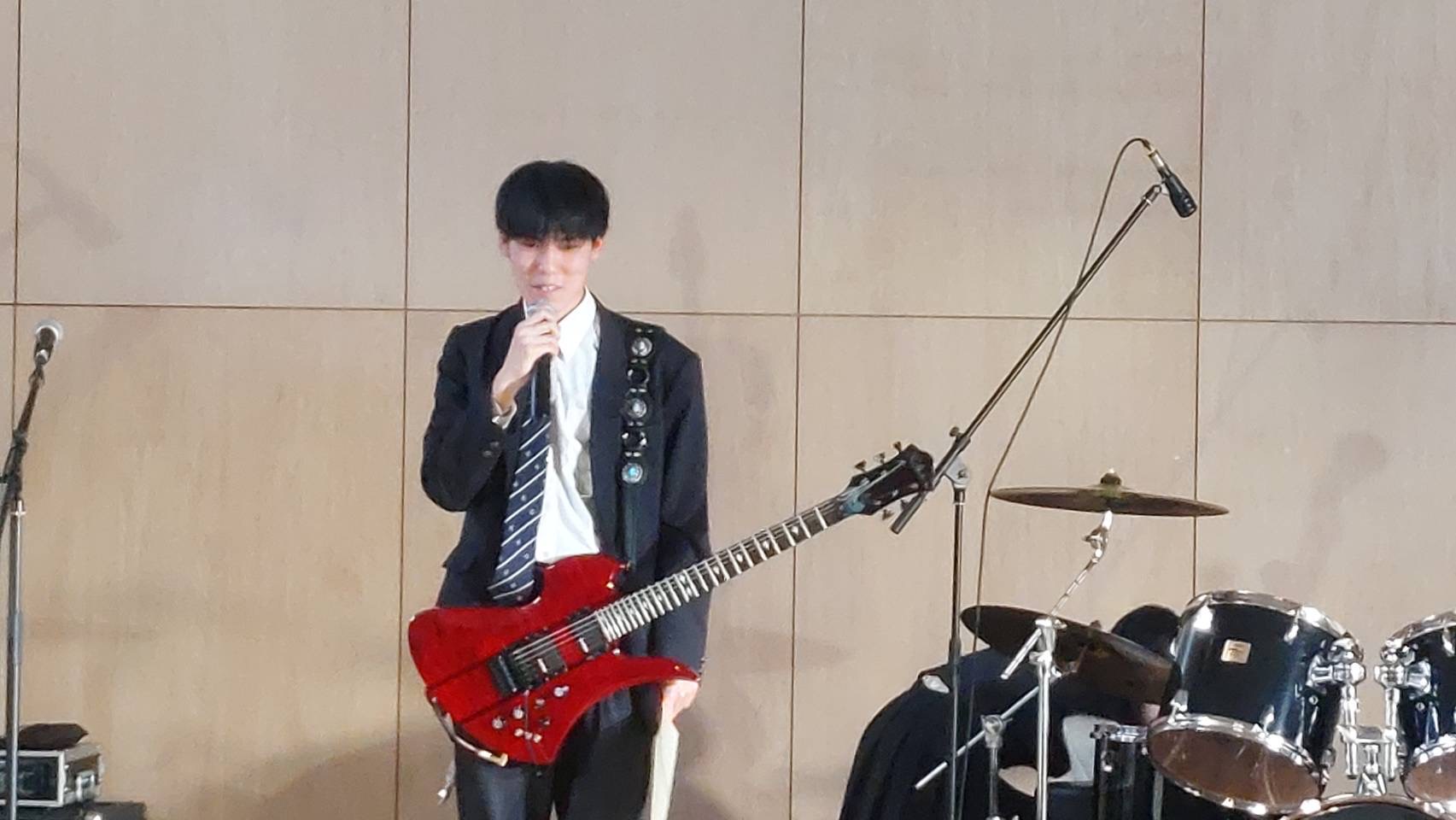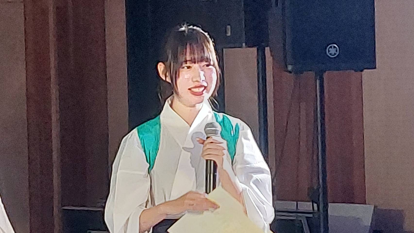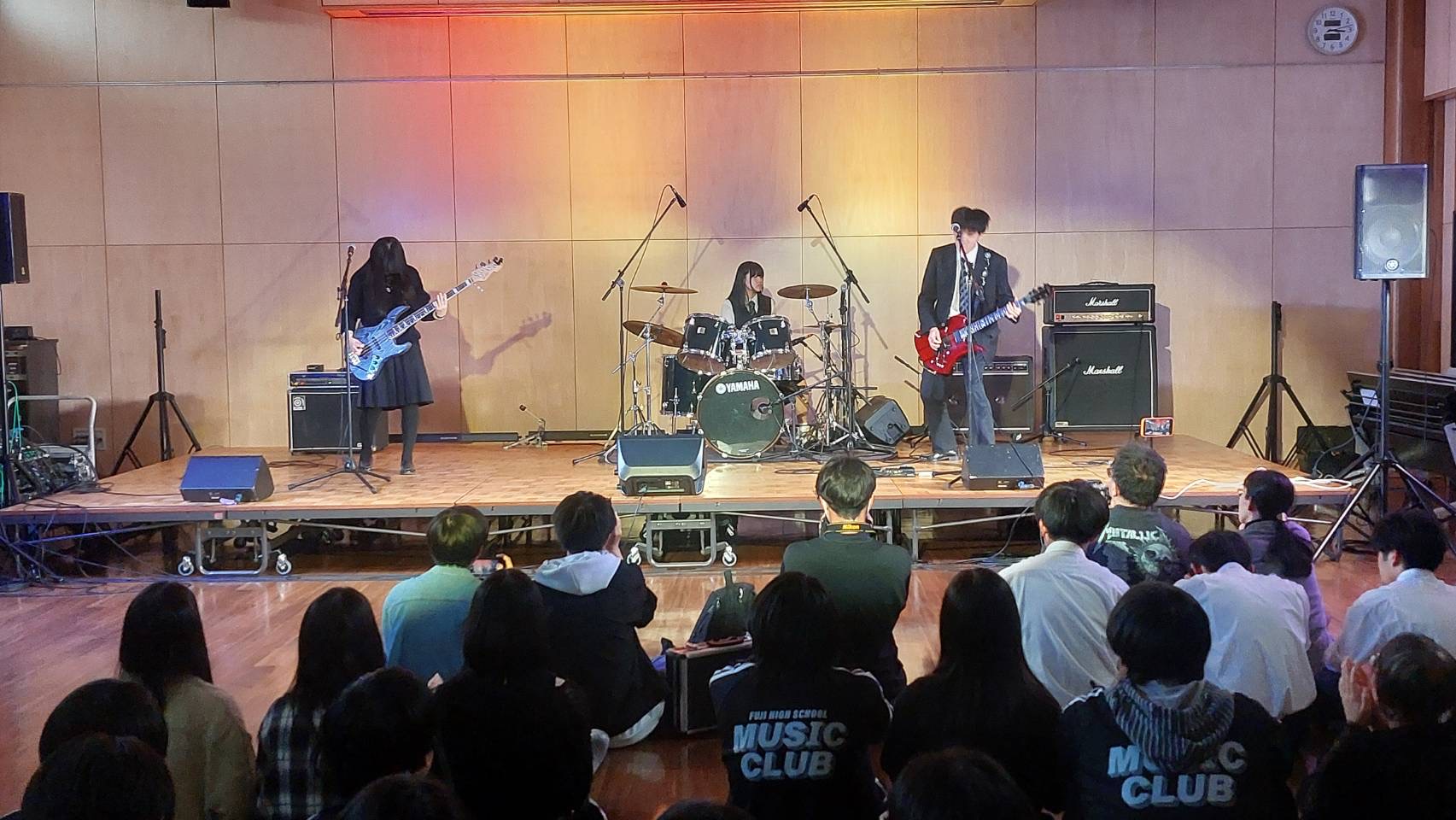 「皆さんこんにちは、富士見高校音楽部です。このイベントに出ることができて嬉しいです。富士見からは2バンドが出演します。この日に向けてたくさん練習してきたので全力でお届けします。最後まで、楽しみましょう。」