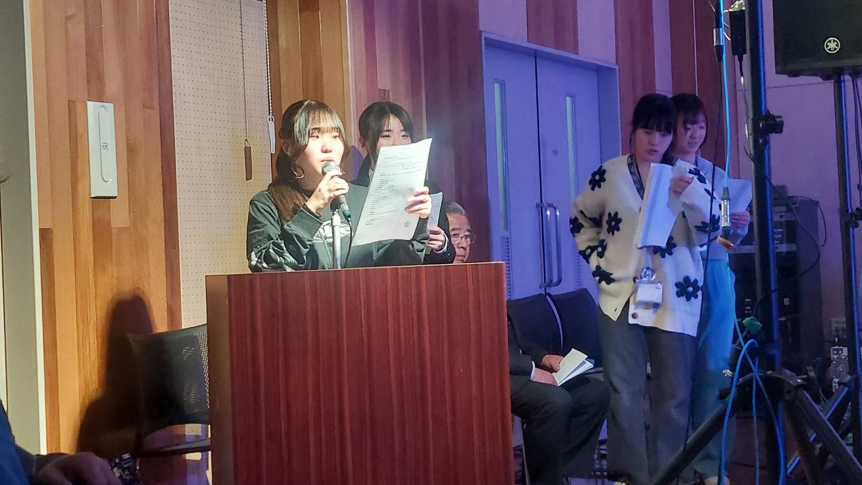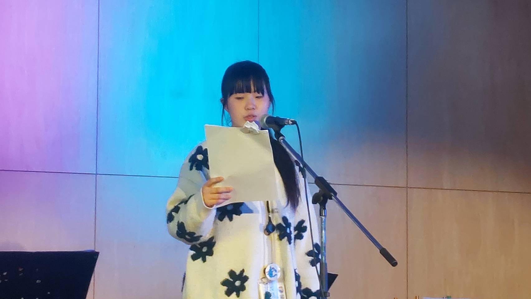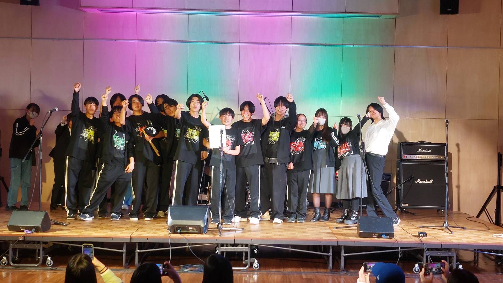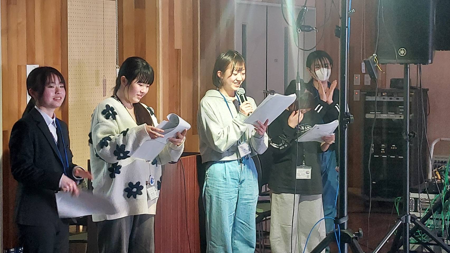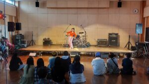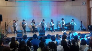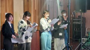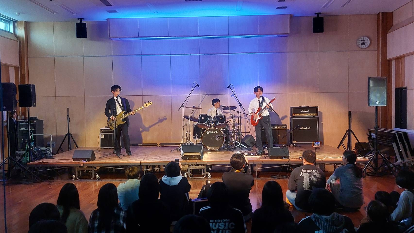 「皆さんこんにちは、富士見高校音楽部です。このイベントに出ることができて嬉しいです。富士見からは2バンドが出演します。この日に向けてたくさん練習してきたので全力でお届けします。最後まで、楽しみましょう。」