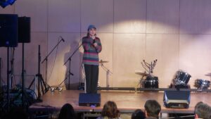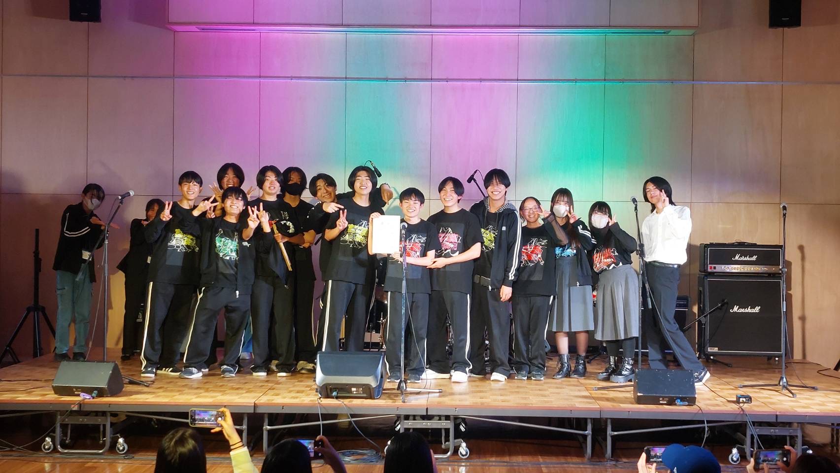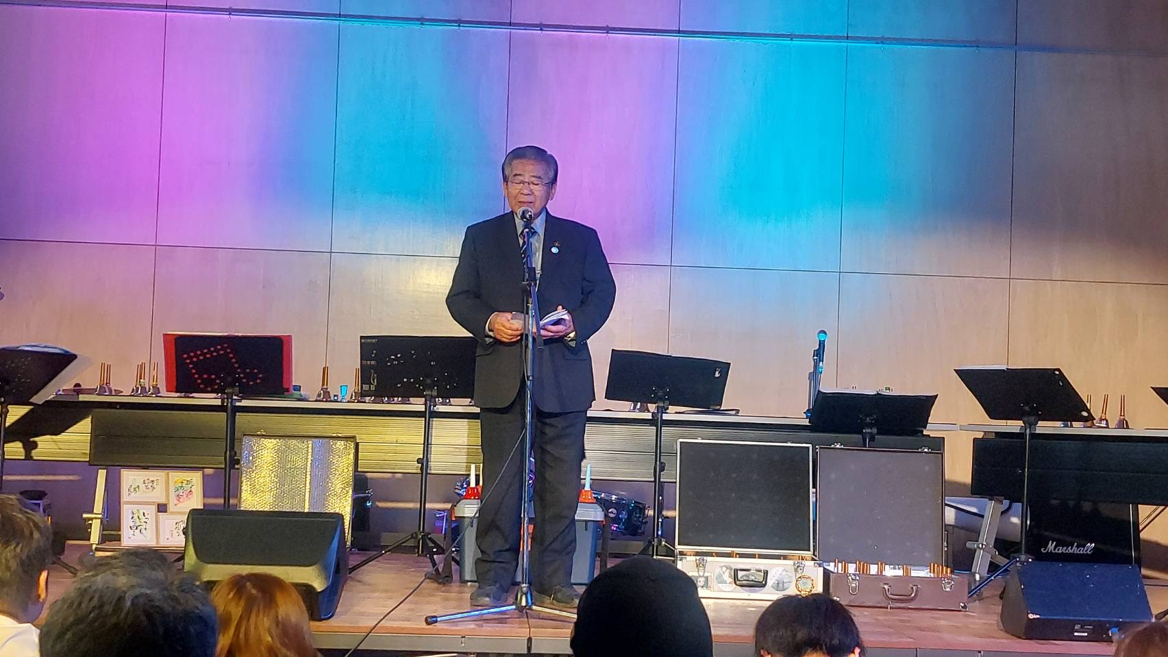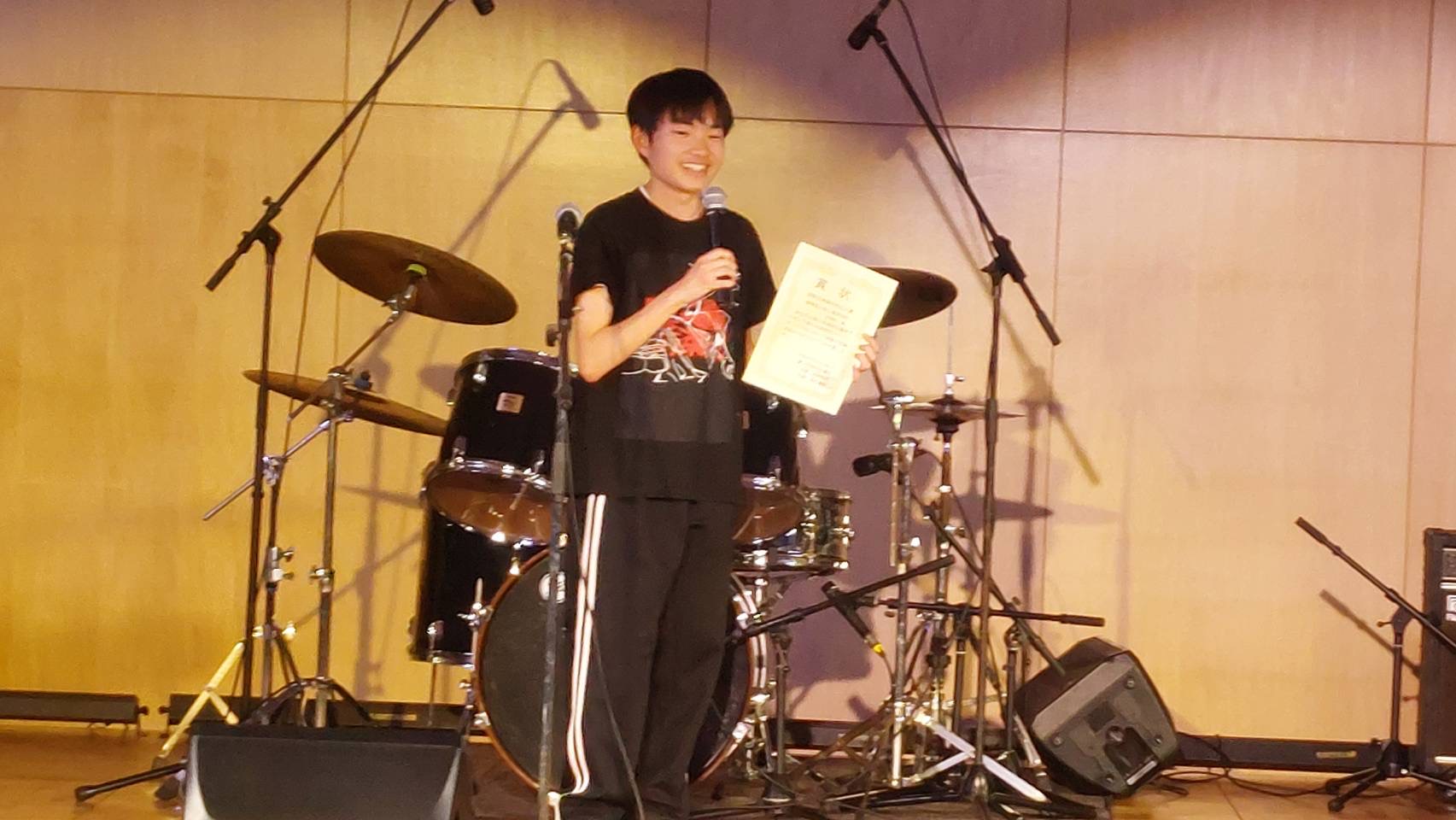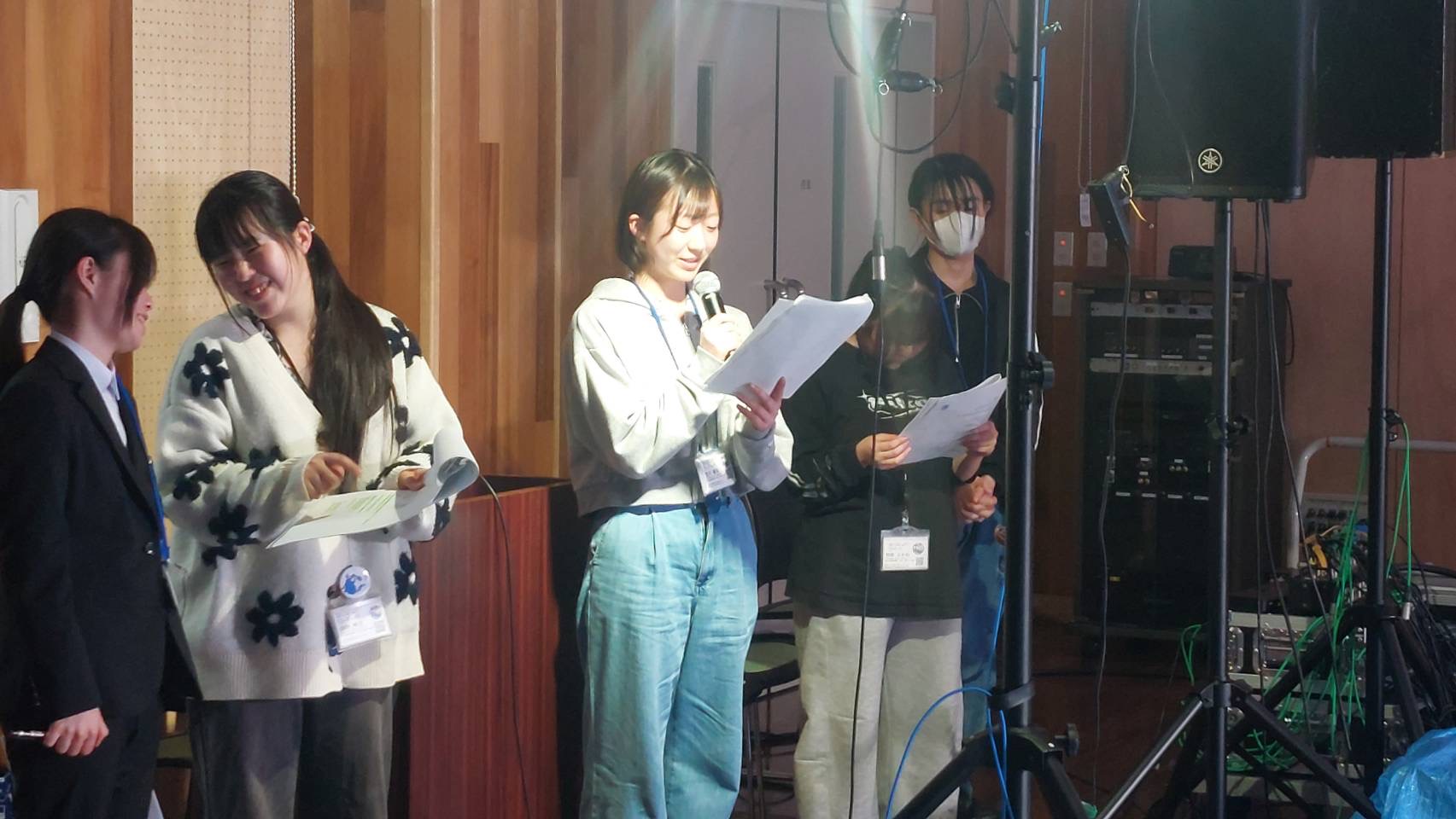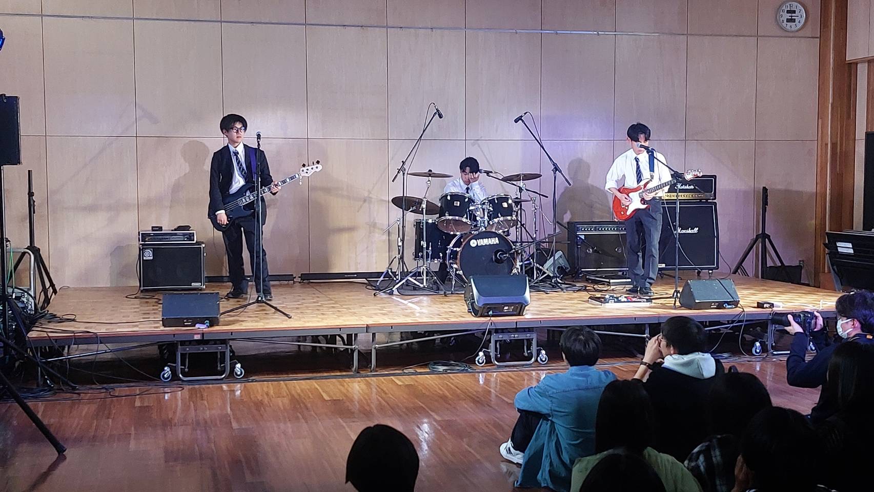 「皆さんこんにちは、富士見高校音楽部です。このイベントに出ることができて嬉しいです。富士見からは2バンドが出演します。この日に向けてたくさん練習してきたので全力でお届けします。最後まで、楽しみましょう。」