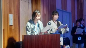 富士宮高校会議所 会頭 富士宮東高校2年 高野唯花です。同じく望月優希です。